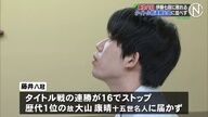 | 藤井聡太八冠、敗れる タイトル戦最多に並ぶ17連勝ならず …将棋の叡王戦第2局で藤井聡太八冠が伊藤匠七段に破れ、タイトル戦の最多連勝記録には届きませんでした。 「叡王戦」五番勝負の第2局は挑戦者の伊藤七段の… (出典:テレビ朝日系(ANN)) |